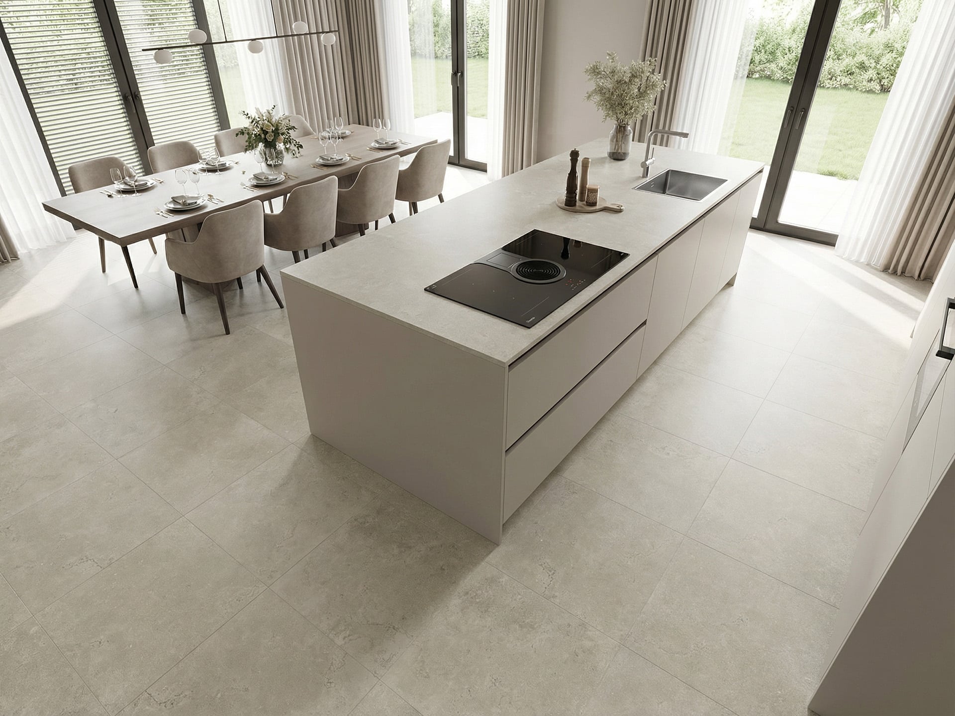 Deze ivory kleur heeft een zachte, verfijnde uitstraling met een lichte beige‑grijze basis. De subtiele steenstructuur en natuurlijke marmerachtige aders creëren een rustige, elegante look die perfect past in moderne, tijdloze en minimalistische interieurs. Dankzij de neutrale tint laat deze kleur zich moeiteloos combineren met diverse stijlen en materialen.